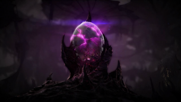 고치 안에서 보랏빛 광채가 맥동하더니, 눈부신 섬광과 함께 수정 조각들이 사방으로 흩어진다...!!